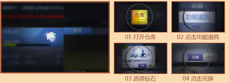 在游戏中可以通过点击人物面板右侧的活动按钮直接参与活动,或者在仓库中使用钻石道具也可以直接进行兑换。