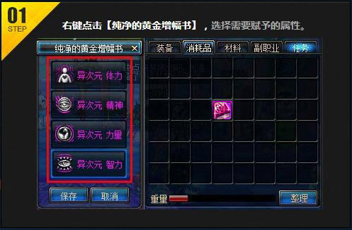 使用后, 可以定向赋予或扭转装备的异次元属性 (无法选择与之前相同的属性,可以给已经强化/增幅的装备使用), 并随机增幅到+6~+10之间, 但会覆盖该装备原有的强化/增幅等级。 只有Lv55以上的稀有及以上的装备, 才能使用此增幅书!