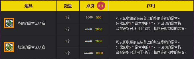 2、使用徽章回收箱后,随机回收其中一个徽章,另一个徽章将被破坏;