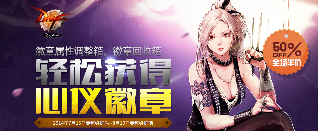 dnf全场半价了,只需要花费平时一半的价格就可以获得徽章属性调整箱和徽章回收箱了,徽章属性调整箱是什么呢?使用后有什么效果呢?下面东坡小编给大家详细介绍活动情况吧。