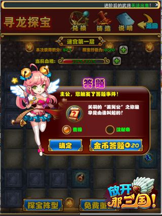 探宝过程是非常奇幻的,各种机关玄机都在等待着你,你是否已经做好了探险的准备了呢。玩家将会在探宝玩法中获得探宝积分,这些这些探宝积分可以用做兑换铸造橙装所需的材料和某些特定的5星武将呢!