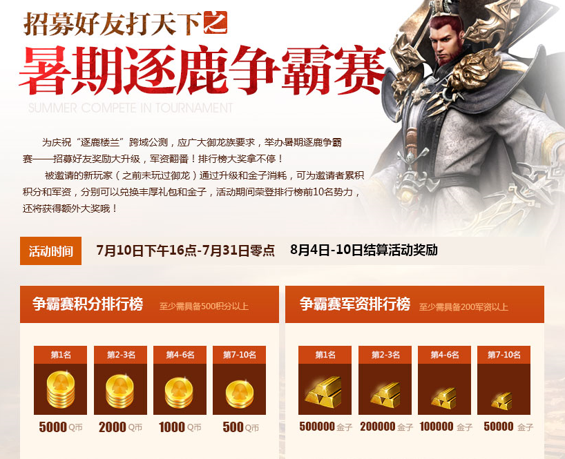 同时,应广大御龙族要求举办的“暑期逐鹿争霸赛”正在火热进行中——招募好友奖励大升级,百万军资赏英豪!