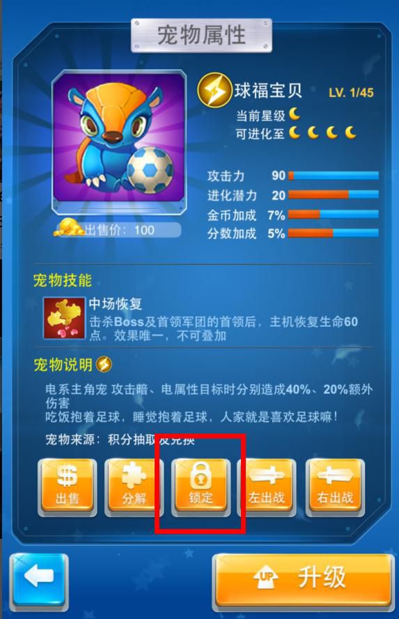 A11:宠物背包中点击宠物图标,在弹出的宠物属性界面上会出现一个锁定按钮,点击锁定按钮被锁定的宠物将不会被分解和出售,妈妈再也不用担心爱宠被误操作啦~