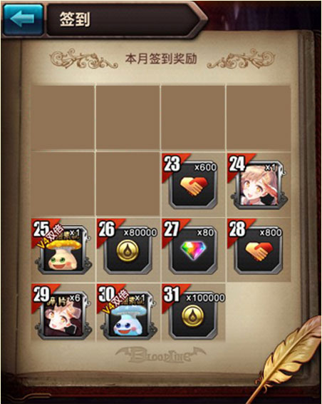 活动规则:只需每日登录时点击游戏主界面的“签到”(如未领取的话会有小红点提示哦),进入签到系统即可领取当日奖励哦