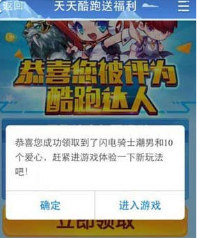 一旦玩家成为酷跑达人之后玩家可以获得闪电骑士和10个爱心哦。