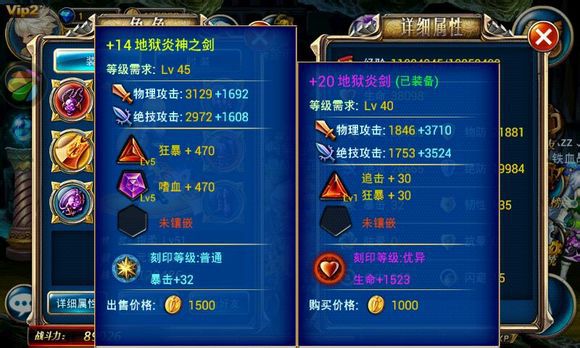 镶嵌上宝石的装备会让玩家的战力得到很大的提升。