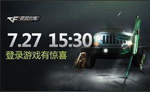 近日有cf玩家在登陆穿越火线时看到弹窗提示CF7.27登陆游戏有惊喜的字样,于是点击后到达了CF周末痛快玩活动网站进行查看,果然!穿越火线活动又更新了。据悉,在7月27日的活动里新增了一项名为“7.27 15:30登陆游戏有惊喜”的活动公告,下面就和小编一起来看看吧!