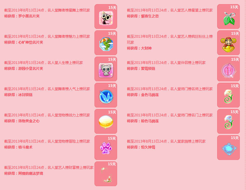 活动结束时,在名人堂各项榜单中上榜的玩家,将获得特别的上榜好礼,还不快来?