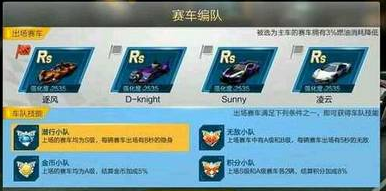 想要跑出好的成绩,赶紧收集S车或者Rs级别的赛车,因为你的车队需要4辆