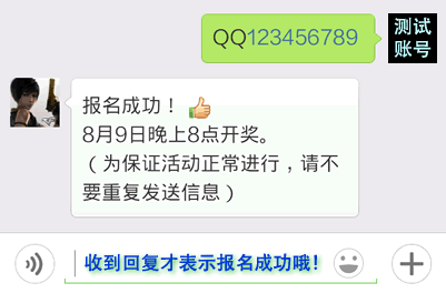2、回复QQ+你的QQ号,收到回复表示报名成功: