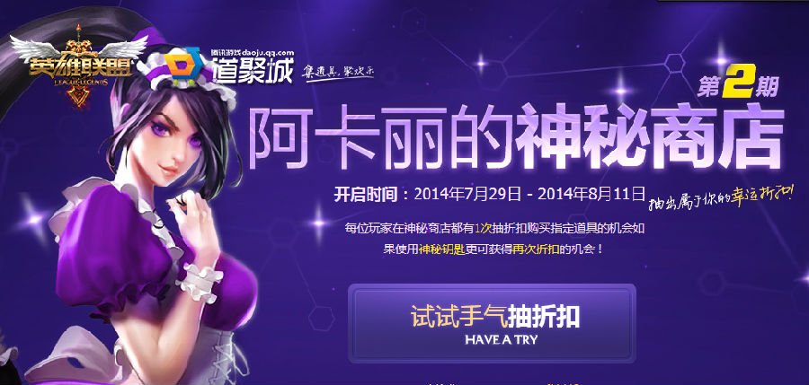 lol阿卡丽的神秘商店第二期抽奖活动已于昨天开启了,虽然说是折扣不断,但很显然很多玩家对于抽到的7折或者8折还是不能释然啊!甚至陷入了“为什么就不能抽中一折两折呢?”的深深的“自责”之中,那么在阿卡丽的神秘商店第二期抽奖活动中怎样才能抽中一折两折呢?下面小编就来为大家介绍一下。