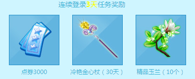在2014年8月1日至8月31日期间,回归的老友玩家,登录即可获得3000点券、冰点爱恋(永久)、粉黛留香/日落依夏30天。