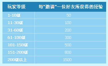 每成功向好友发送一次邀请就可获得相应经验奖励,每天超过10次之后仍可邀请,但不再有经验奖励