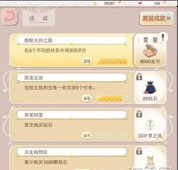 完成暖暖环游世界中的成就任务或者套装成就,就有大量的钻石奖励等着大家哦。