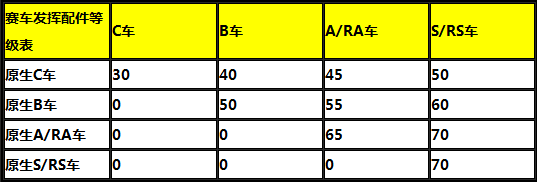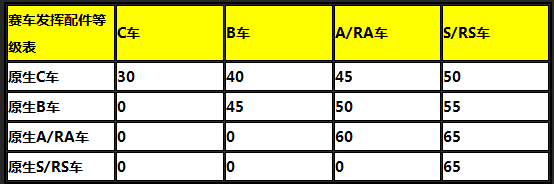 所有配件品阶开放至紫色+1,最高可升级至70级,同时原生B、原生A/RA、原生S/RS及其各自升级版赛车享受配件最大等级均提升5级。