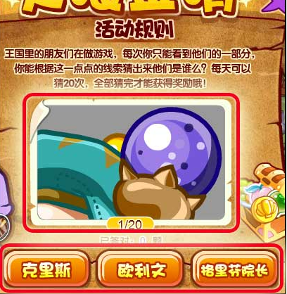 根据面板中的提示进行答题,每天可以猜20次,全部猜完才能获得奖励,答题多少题就能获得对应的奖励哦!