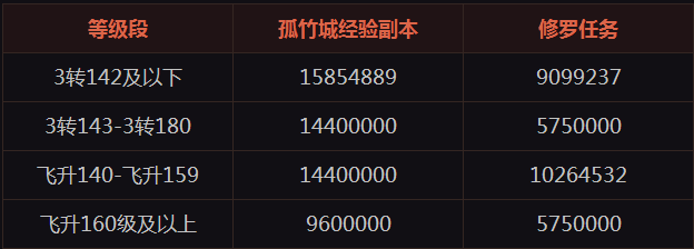 【45分钟内可获经验对比表 理论值】