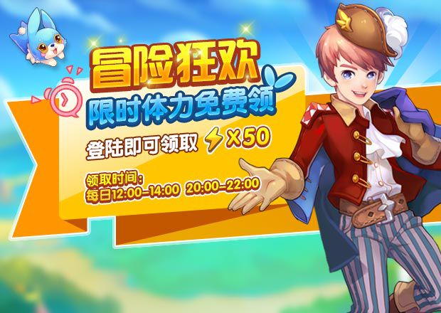无论您是否还在为体力不够而烦恼,即日起每天12:00-14:00,20:00-22:00登录游戏,可免费领取两次50体力,配合100%碎片掉落的活动,小伙伴们千万别错过了!