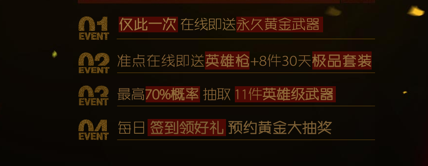 2、完成签到5天的玩家,同时在8月9日15:30准点在线,第二天抽取英雄级武器的概率增加10%