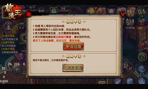1、必须男女组队前往江陵找月老NPC,队伍中只能有要申请结婚的两人,男方为队长。