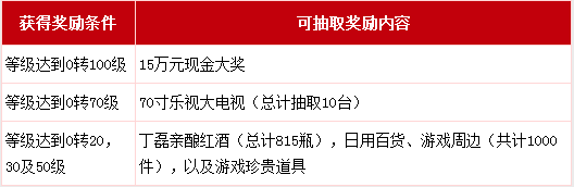 惊喜一:升级送15万元现金、70寸彩电、丁氏红酒