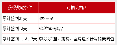 惊喜三:签到赢iPhone6、珍稀神秘奖品