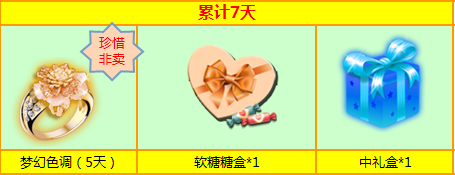 累计签到7天不仅有软糖糖盒、中礼盒,更有房间变色非卖戒指——梦幻色调。
