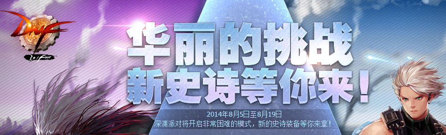 dnf8月5日更新了史诗装备,dnf新的史诗装备怎么获得呢?dnf开启了华丽的挑战活动,深渊派对将开启非常困难的模式。下面东坡小编给大家详细介绍华丽的挑战活动内容吧!