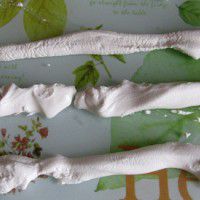 4. 将湿糯米粉拿起来搓成条, 放在干净的案板上;