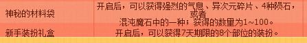 神秘的材料袋开启后,可以获得强烈的气息、异次元碎片、4种陨石,或者混沌魔石中的一种;获得的数量为1——100。