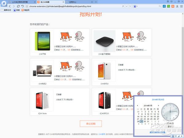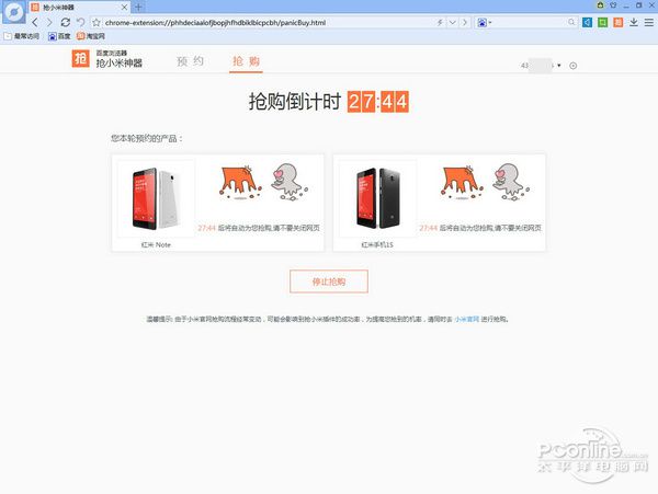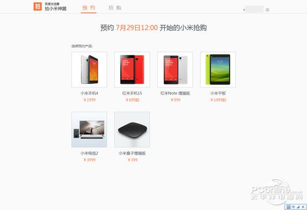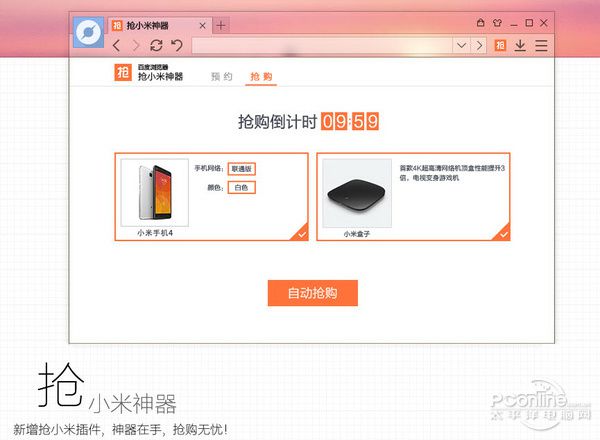 这不,无所不知的百度最近推出了百度浏览器抢小米专版,该浏览器内置抢小米神器,据说可以提高抢购成功率,这不,我们太平洋电脑网软件组也接着小米4首发的春风来进行一个测试,看看这个神器能帮我们抢到小米4不。