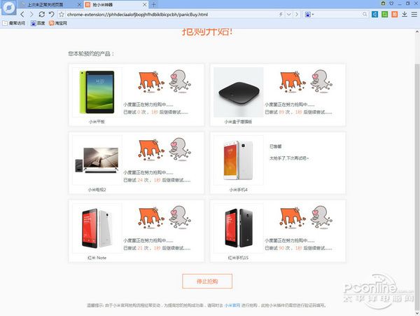 终于都验证好了,抢购继续,可是抢小米页面只是跳动着尝试次数,却没有抢到啥。