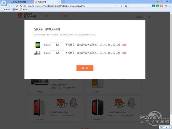 12点一到,正式开抢,百度浏览器自动弹出验证码输入框,供用户选择,太激动,笔者忘记截图了,直接填完验证码就继续抢购。