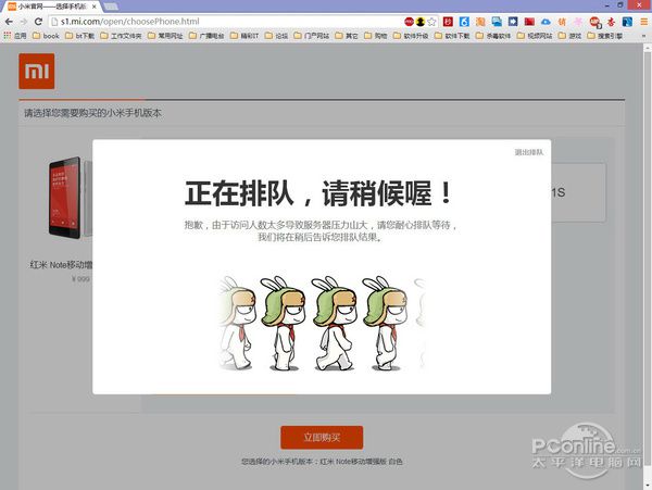 接下来就是等待结果,还不到一分钟时间(官网公布为37秒),小米4就被抢光了,而我这边则依旧在抢购及排队中。好吧,我们把目标转向其它的产品,西瓜没了,捡个芝麻也是好的。