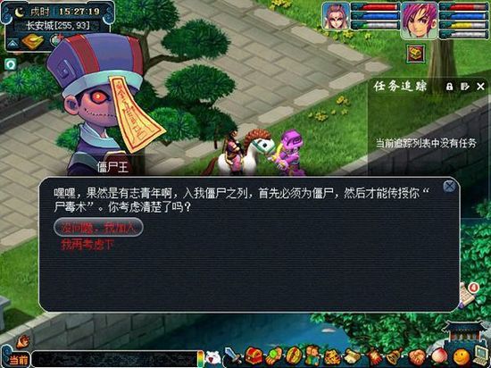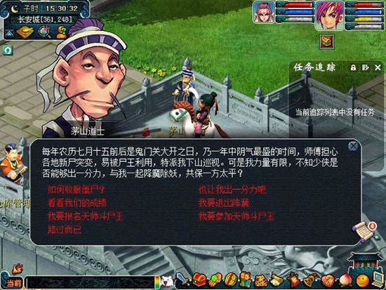 每年一度的人鬼乱斗,僵尸大作战又开始了。玩家在中元节活动期间,可以到长安找僵尸王(258,94)加入僵尸阵营或茅山道士(360,250)加入道士阵营。加入阵营后,可以学习对应的技能及称谓。