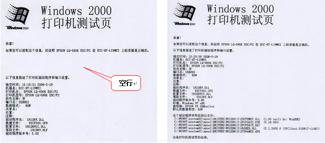 用户在使用部分平推式打印机时,出现打印空白的问题。具体情况是:打印一段内容后,空白几厘米,再继续打印。打印内容没有缺失。如下图: