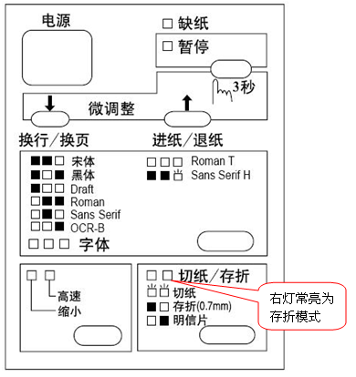 按“切纸/存折键”退出打印机的存折状态即可,带有存折模式的打印机,在面板上均有存折键和存折灯,可以通过存折灯确认是否在存折模式下。
