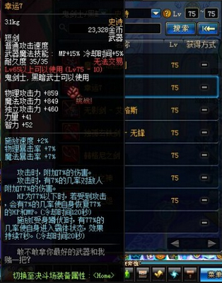 但是由于附加伤害的不稳定,脸斗士使用幸运7能打出成吨的伤害,坑斗士的幸运7却永远只能附加7%的伤害。使用纯百分比技能剑魂一觉,以地狱级狄瑞吉的幻影作为测试对象,在只更换武器其任何装备不变的情况下发现都是将BOSS打到22条血,而唯一不同的便是使用无影剑艾格斯时,BOSS的第22条血这剩下一小半了。
