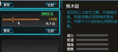 桃木剑,取百年以上桃木之精,可制御百鬼,在猎场模式有特殊伤害加成,并提升10%的进化点获取速度。