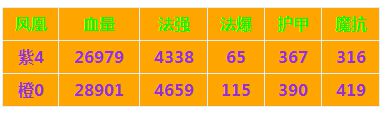 1、我们看到,紫4-橙0增幅最大的是法爆和魔抗;意味着凤凰是一个出色法系DPS,同时兼具了对抗法师的作用