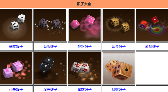 这4种骰子,深黑骰子的能力是最鸡肋的,肯定不考虑。想要快速升级的请拿艳粉骰子,要靠人品和一些快速获得金币的请拿合金骰子,最后的枫树骰子虽然可以金币加成,不过特殊费用打折还是相当的给力的。