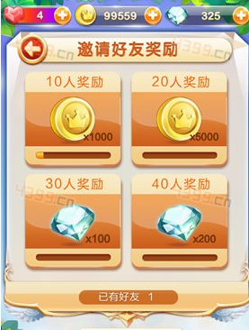 邀请超过30个好友进行游戏,有100个钻石奖励,超过40人有200个钻石奖励。