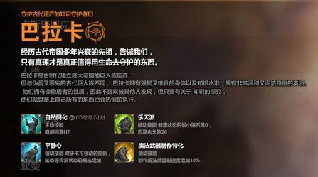 虽然巴拉卡长的与亚曼差不多,但是作为一个拥有神一样的天赋的种族,人气不可谓不高!首先,“自然同化”:HP顺满(BUG啊!有木有!不过还好CD是 2个小时,不然这玩什么职业都牛掰)二,“乐天派”:对于一些十分专注于刷怪的玩家,如果没有看健康的习惯,这个技能还是很不错的。三,“平静心”:这个技能才是PVP神技,一般玩巴拉卡的人直接就选择了祭祀这个职业,在《TERA》中,祭祀本来就是一个打不死的小强,然后在带一个眩晕等负面抗性的 BUFF,你说咱要怎么打???所以强烈推荐巴拉卡玩祭祀。