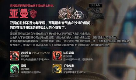 亚曼,一个由野兽演变而来的种族,可以说选择这个种族的玩家十分的少啊,但是不得不说这个种族的天赋比起前面几个好的不是一星半点,其实不用看技能,光从长相就可以看出,亚曼绝对是枪骑士的最佳种族。