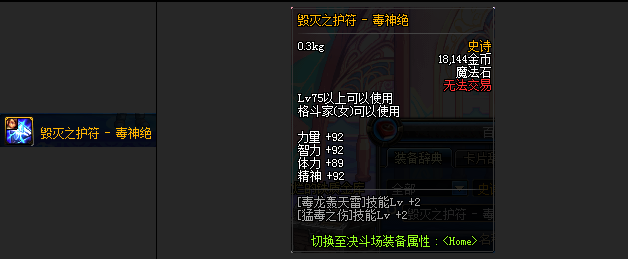 dnf在8月5日的时候新增了dnf75ss左右槽,魔法石增加毁灭之护符-毒神绝,真男人的证明,辅助装备觉醒之悟-毒神绝,克里西斯护腕,尼贝尔的天界军衔,下面东坡小编详细给大家介绍dnf新增75ss左右槽属性。