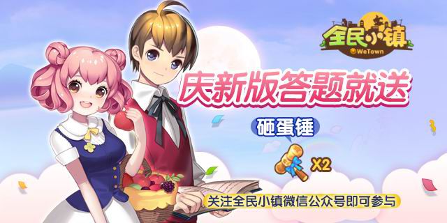 砸蛋锤*2/人,人数不限。绑定账号后回复正确答案的所有镇长都可获奖。