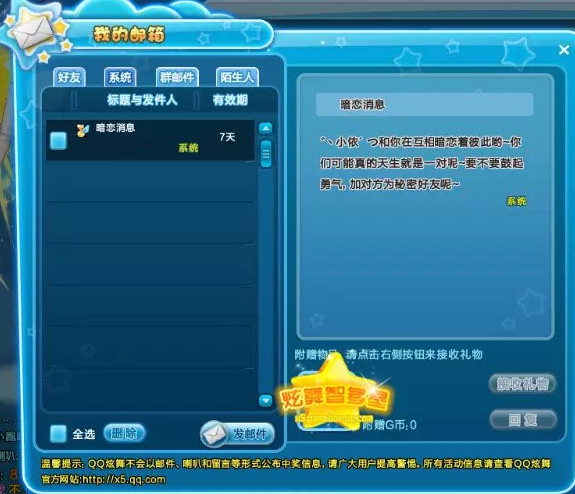 温馨提示:在暗恋系统中,互相暗恋或秘密好友的信息均只有双方才可见,绝对没有第三名玩家可以在游戏中看到。
