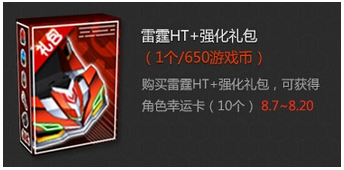 可以购买雷霆HT+强化礼包,开启后即可获得,同时在8月7日到20日还可额外获得角色幸运卡10张。