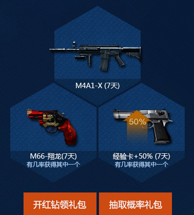 开通一个月红钻用户可以获得M66翔龙和经验卡7天中的一个