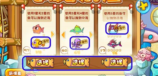2.进入选择鱼,每次抛鱼只能选择一个类别哦!